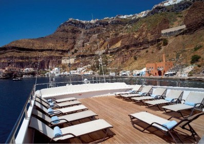 Během dne se život na palubě soustředí kolem barového salónku a jídelny na hlavní palubě a jídlo se podává také "pod širým nebem" v závislosti na počasí. Kapitán zakotví v odlehlých zátokách a na krásných neobydlených ostrovech, kde si hosté podle počasí užívají koupání, šnorchlování a jízdu na kajaku. Mega Yacht ubytuje všechny hosty najednou a poskytuje vysoký standard gastronomie. Salonek a jídelna na hlavní palubě Elegantní jídelna je vybavena velkými okny, která poskytují krásný výhled na přístavy, v nichž se loď nachází. V prostorné jídelně se všichni cestující usadí na místo a jídlo se podává u stolu nebo je vystaveno na nejmodernějším teplém a studeném bufetu.